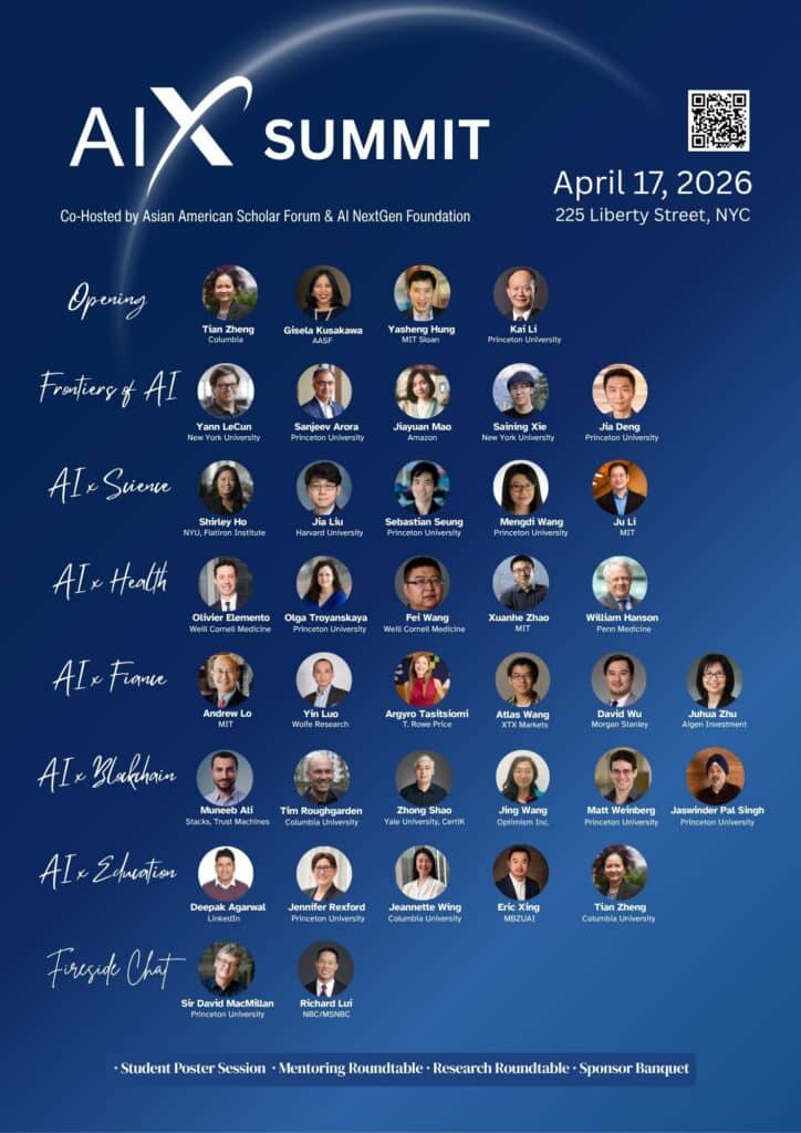 NEW YORK, NY — At a moment when artificial intelligence is rapidly reshaping global technology and economic competition, the Asian American Scholar Forum (AASF) and the AI NextGen Foundation convened leading AI researchers, technology innovators, and policy thinkers on Friday, April 17, for the inaugural AIX Summit at Convene Brookfield Place in New York City. The gathering brought together pioneers from academia, industry, and finance to examine how artificial intelligence will drive the next wave of American scientific discovery, technological development, and economic growth.